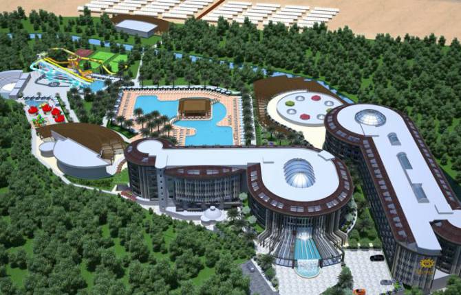 Гостиница расположена в 10 км от посёлка Манавгат на большой зеленой территории рядом с историческими местами и достопримечательностями. В 12 км находится Водопад Манавгат, музей в Сиде, Храм Аполлона и Афины и много других интересных мест, где должен побывать каждый турист. В отеле на выбор есть стандартные номера, эконом-класса, номера для инвалидов, люкс, а также семейные апартаменты. Все номера оборудованы удобной мебелью и современной техникой. В каждом номере есть кондиционер, плоский телевизор со спутниковыми каналами, телефон, мини-бар, ванная комната с душевой, феном. Можно пользоваться сейфом и балконом. В отеле круглосуточно работает стойка регистрации. Можно за дополнительную плату взять в аренду авто, воспользоваться услугами конференц-зала, который рассчитан на 500 персон. В пределах отеля работает мини-маркет, можно заказать услугу прачечной, химчистки, организовать трансфер или торжественное событие. Гости отеля могут пользоваться крытым и открытым бассейном. В открытом бассейне есть горки, можно заниматься водными видами спорта, посещать тренажерный зал, сауну, турецкую баню, массажные кабинеты. Для детей в отеле есть плавательный бассейн. Есть возможность заказать услугу няни за дополнительную плату. Здесь гостей обслуживает главный ресторан, что рассчитан на 1700 персон. Ассортимент блюд национальной кухни и не только достаточно большой. На территории также работает несколько ресторанов A la carte, среди которых турецкий ресторан, итальянский, рыбный, китайский. В лобби баре можно выпить напитки, коктейли, соки и десерты на любой вкус. У бассейна и на пляже есть тоже бары, где каждый гость может провести время и расслабиться. В течения дня работает снэк-бар и витамин-бар. К отелю относится песчаный пляж. Матрасы, полотенца и зонтики отдыхающим предоставляются на бесплатной основе. Пляж отеля имеет синий флаг. Это значит, что вода соответствует международному качеству и полностью пригодна для купания. Пляж находится на первой пляжной линии.