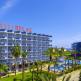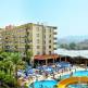 Отель занимает площадь в 9450 кв.м. Территория отеля большая и озелененная. В отеле достаточное количество стандартных номеров, каждый из них оснащен мебелью и техникой: удобные кровати, телевизор с российским каналом, телефон, индивидуальный кондиционер, душевая, фен и балкон. Надежный сейф и мини-бар – платно. Номера убирают каждый день, а смена белья – 2 раза в неделю. Гости могут воспользоваться бесплатными и платными услугами. Джакузи, сауна и услуги массажа за определенную дополнительную плату, а также бильярд, парная, игровые автоматы, водные виды спорта. Бесплатные услуги: фитнес, хамам, настольный теннис и занятия в тренажерном зале. Для маленьких туристов: несколько бассейнов для малышей, детская площадка и детский клуб для детей дошкольного и школьного возраста. Каждый день для гостей отеля организовывается анимации и вечерняя платная дискотека. В главном ресторане разнообразное и вкусное меню. Отель работает по системе «все включено». Отдыхающие могут насадиться полноценным трехразовым питанием и напитками из местного бара. На территории отеля находятся парикмахерская и SPA-центр, прачечная, магазины, 2 конференц-зала, открытые бассейны, надувные водные горки и услуги врача. Некоторые из перечисленных услуг платные. Пляж находится через дорогу от отеля в 3-5 минутах ходьбы. Лежаки, солнцезащитные зонты и матрасы предоставляются бесплатно.