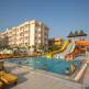 Номера в отеле оснащены ванной комнатой с гигиеническими принадлежностями, балконом, мини-баром, сейфом, кондиционером, спутниковым телевидением с русскоязычными каналами и феном. На полу лежит ковровое покрытие. Обслуживание номеров проводится круглосуточно. Питание в комплексе осуществляется по системе «все включено». В основном ресторане и барах вы сможете попробовать много разнообразных блюд местной и международной кухни. Алкогольные и безалкогольные напитки, экзотические коктейли турецкого производства входят в стоимость проживания в отеле. К платному перечню услуг относится: вызов врача, химчистка, парикмахерская, такси, доступ в интернет, аренда автомобиля, организация деловых встреч и работа с документами (факс и ксерокс). Для детей оборудован мини-клуб и современная игровая площадка. За отдельную оплату можно воспользоваться услугами няни. Собственный галечно-песчаный пляж расположен рядом с отелем и имеет весь необходимый инвентарь для отдыха: шезлонги, зонтики, полотенца и матрасы, пользование которыми входит в стоимость проживания в отеле. На территории комплекса проводится дискотека и различные анимационные мероприятия. Гости могут поиграть в баскетбол, волейбол, настольный теннис, дартс, бильярд и заняться водными видами спорта. Восстановить силы можно в турецкой бане и сауне.