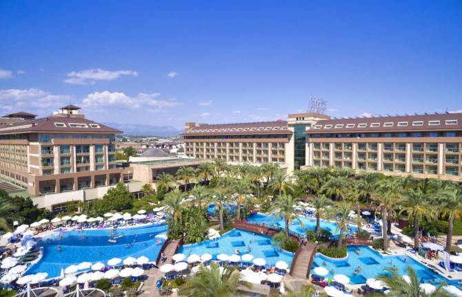 Гостиница занимает площадь в 80 тысяч квадратных метров, где есть много мест для отдыха, занятия спортом, приятного времяпрепровождения. Для отдыхающих доступны стандартные номера, которые рассчитаны на троих человек. Площадь такого номера составляет 27 кв.метров. Имеются в наличии несколько номеров для инвалидов. Можно заказать однокомнатный семейный номер. Этот номер разделён на две части. Для детей предусмотрена двухъярусная кровать, в наличии ванная комната. Максимум в таком номере может проживать 4 человека. По размеру семейный номер такой же как и стандартный. Можно забронировать семейный двухкомнатный номер. Он более просторный и может принять одновременно до 5 человек. В каждом номере есть мини-бар, балкон, кондиционер, сейф, телефон, ванная, фен, банные принадлежности. На территории работает 4 конференц-зала, 7 ресторанов, 8 баров, 4 открытых бассейна, терраса для загара, интернет-кафе, лифт, прачечная, парикмахерская, пункт обмена валют. За дополнительную плату можно организовать трансфер в аэропорт. Для детей есть водные горки, детский бассейн, игровая площадка, детский клуб, меню в ресторане, стульчики для кормления, детская кроватка, няня (платно). Отдыхающие отеля могут пользоваться водными горками, игровой комнатой, сауной, баней, баскетбольной площадкой, тренажерным залом, аквапарком, водными развлечениями. Дайвинг, массаж, бильярд, теннисный корт предоставляется на платной основе. За дополнительную плату можно пользоваться арендой авто, пунктом обмена валют, парикмахерской. Тип питания в отеле предоставляется по системе "Всё включено". В концепцию входит завтрак, обед и ужин, поздний завтрак, ужин в ресторане A la carte. В таких ресторанах обслуживание происходит по меню по предварительной резервации. В течение дня можно пробовать вкусную выпечку, чай, кофе, печенье, сладости, гамбургеры, фрукты, мороженное, алкогольные и безалкогольные напитки. Импортные напитки предоставляются на платной основе.
