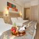 На выбор есть стандартные номера с двумя отдельными кроватями. Стандартный номер рассчитан на двоих человек. В наличии есть одноместный номер с одним односпальным местом и стандартный номер, в котором есть 1 большая кровать на двоих. В отеле есть трёхместные номера, которые оборудованы тремя односпальными кроватями. Отдыхающим в номерах доступны такие удобства: кондиционер, личная душевая, санузел, банные принадлежности, телевизор, спутниковые каналы, мини-бар, радио, сейф. Все номера обслуживаются круглосуточно. На территории отеля работает SPA-центр, который готов предложить качественные косметические услуги по уходу за кожей лица и тела. Отдыхающие могут посещать сеансы массажа, ходить в сауну, тренажерный зал. За дополнительную плату можно воспользоваться услугами интернет-кафе и прачечной. Для всех гостей отеля предусмотрена бесплатная услуга "Будильник". В пределах комплекса работает игривая комната, площадка для волейбола, бильярдный стол. В этом отеле питание подаётся по типу шведского стола. В стоимость входит только завтрак. В ресторане подают блюда национальной и европейской кухни. На открытом воздухе находится терраса. В отеле есть камера хранения багажа, круглосуточная стойка регистрации. Персонал доброжелательный, разговаривает на русском, английском, болгарском языках.