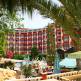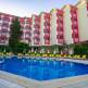 Каждый из номеров гостиничного комплекса – довольно просторный и оснащённый удобной и комфортабельной мебелью. Также в номерах есть телевизор со спутниковыми каналами, телефонный аппарат, сейф (которым можно воспользоваться за дополнительную плату), кондиционер типа «сплит», личная ванная комната с душевой кабиной или ванной, феном и туалетом, а также балконом. Смена постельного белья происходит 2 раза в неделю, полотенец – 3. На территории отеля располагается 2 открытых ресторана (на 300-350 персон), в которых гостям предлагают систему питания «все включено», а также ароматно приготовленные традиционные блюда турецкой и интернациональной кухни; пять баров с большим выбором прохладительных алкогольных и безалкогольных напитков местного и импортного производства, соков, чая и традиционного кофе. Также доступны конференц – зал, рассчитанный на 250 человек, два открытых плавательных бассейна, парикмахерская, прачечная, сейф на ресепшене и кабинет врача. Для самых маленьких гостей в отеле оборудовано два неглубоких бассейна, мини-клуб (от 6 до 12 лет) с интересными и развивающими играми, анимационными программами и развлекательными шоу, а также игровая площадка и детский буфет. Среди бесплатных развлечений, предлагаемых гостиничным комплексом отдыхающим, посещение фитнесс-центр, аэробика, настольный теннис, дартс, вечерние развлекательные анимационные шоу-программы, представления в стиле «турецкая ночь». За дополнительную плату гости могут заказать расслабляющий массаж, прокатиться на парашюте, водных лыжах и каноэ, попробовать свои силы в серфинге, насладиться бутылированными напитками, сеансом сауны, коктейлями в витаминном баре, традиционным турецким кофе, а также арендовать автомобиль и поиграть в бильярд. Собственный песчано-галечный пляж отеля располагается в пешей доступности. Здесь отдыхающим бесплатно предоставляются матрасы, шезлонги и зонтики.