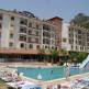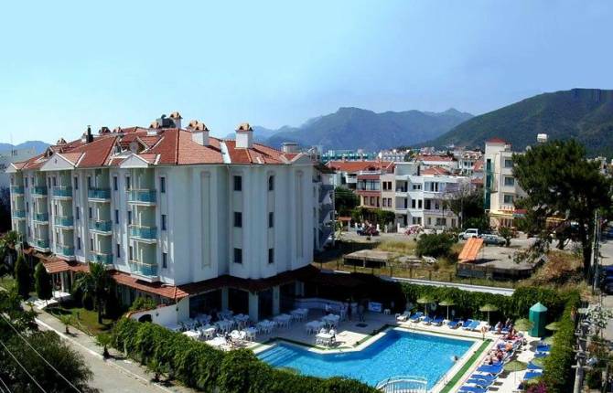 Отель имеет такие инфраструктурные объекты: 2 бара, 2 ресторана, 1 открытый бассейн и интернет кафе. Небольшая, очень ухоженная, с декоративными кустарниками и деревьями территория, наполнена домашней атмосферой и располагает к размеренному отдыху. Четырехэтажное здание отеля имеет большие окна, из которых открывается отличный вид на море и горы. Питание в отеле осуществляется по системе «все включено». Опытные повара порадуют вас превосходными блюдами международной кухни, а бармены предоставят вам алкогольные и безалкогольные напитки местного и зарубежного производства. В номера есть ванная, балкон, фен, кондиционер, телефон, спутниковое телевидение с русскоязычными каналами. На полу лежит ковровое покрытие. Смена постельного белья и полотенец проводится 2 раза в неделю. Обслуживание номеров заканчивается после 21:30. Для расслабления и восстановления сил у вас есть возможность посетить джакузи, сауну, турецкую баню и массажный кабинет. Для активного отдыха вы можете поиграть в бильярд, настольный теннис и дартс. Выступления аниматоров, Турецкая ночь и живая музыка будут проводиться в отеле 1 раз в неделю. В данном комплексе имеется тренажерный зал, в котором находится эллипс, беговая дорожка, 2 велотренажера и универсальный станок для тренировки многих групп мышц. Для детей в отеле сеть маленький бассейн. В ресторане можно пользоваться детским креслом. Городской песчано-галечный пляж находится всего в нескольких минутах ходьбы от отеля и предоставляет весь необходимый инвентарь: шезлонги, матрасы и зонтики за отдельную оплату. В 1,5 км от комплекса находится город Мармарис, в котором расположены различные развлекательные инфраструктурные объекты. Активная молодежь сможет отжигать на многолюдных вечеринках и посещать интересные экскурсии.