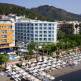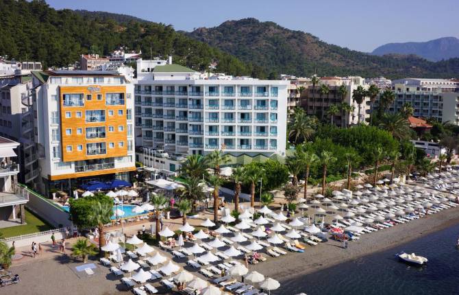 Городской отель расположился в удобном месте на побережье, рядом с магазинам и остановкам общественного транспорта. Туристам для поселения предлагаются просторные номера, в некоторых есть выход на балкон. Все они подключены к центральному кондиционированию, по прибытию можно бесплатно воспользоваться мини-баром. В ванной комнате оборудована душевая кабина. Отель располагает собственным выходом к морю с песчано-галечным берегом. Пляжный инвентарь предоставляется бесплатно и имеется пирс. В дополнение, гости смогут позагорать на обустроенной террасе, на территории комплекса или освежится в открытом бассейне. В дневное время для отдыхающих организовываются развлекательные игры, а вечером гостей приглашают на красочные шоу, выступления акробатов, танцоров, тематические вечера и дискотеку. Для юных путешественников имеется детский бассейн. В ресторане предусмотрены стульчики для малышей, а по отдельному запросу предоставляются кроватки. В дополнение, можно посетить SPA-центр, где оборудован современный тренажерный зал, турецкая баня и есть возможность пройти различные процедуры по уходу за кожей и телом. Ресторан отеля подает трапезы в виде шведского стола. Предлагаются блюда из разных видов мяса, птицы и рыбы, в том числе приготовленные на гриле, несколько гарниров и множество зелени, овощей и фруктов. В баре возле бассейна можно заказать прохладительные коктейли и легкие закуски. Кроме того, работает бар в лобби.