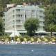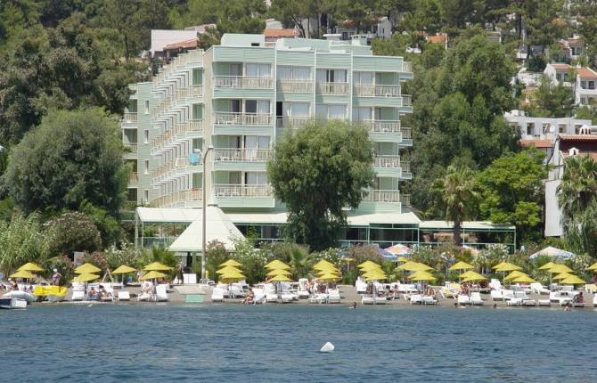 Этот отель находится в 3,5 километрах от центра в г. Мармарис на 1-й пляжной линии. Расстояние к морю меньше 200 метров. Самый ближайший аэропорт находится в г.Даламан примерно в 100 километрах от отеля. Рядом с отелем находится очень много ресторанов, гостиниц, магазинов, развлекательных центров. При желании можно прокатиться в аквапарк, который находится в 3 км от отеля. Гостиница представляет собой большое 5-ти этажное здание, в котором можно заказать один из 96-ти номеров. Есть номера, которые рассчитаны на троих человек общей площадью 20 кв. метров, несколько номеров на одного человека и большие номера площадью до 35 кв.метров, в которых можно разместить максимум 4-х человек. В каждом номере есть современная мебель, ванна, кондиционер, телевизор, фен, мини-бар, балкон. Обслуживание номеров производится круглосуточно, ежедневная уборка, а также 3 раза в неделю смена белья. За отдельную плату можно воспользоваться услугами сейфа, если есть в этом необходимость. На территории отеля работает открытый бассейн, два ресторана, бар, имеется также кабинет врача, TV салон, а также детский бассейн для самых маленьких отдыхающих. Все гости отеля могут провести приятно время и отдохнуть за интересной шоу-программой, которая тоже предоставляется бесплатно. За дополнительную плату можно расслабиться в настоящей турецкой бани, побывать в современной сауне, подкачать мышцы и привести себя в тонус после десертов в тренажёрном зале. После чего можно воспользоваться услугами хорошего массажиста или поиграть в водные виды спорта. Пляж очень чистый, песчаный. Все зонтики, шезлонги предоставляются бесплатно. За отдельную плату можно взять матрацы.