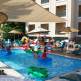 Отель имеет небольшую, но очень уютную и ухоженную территорию. Возле открытого бассейна, оборудованного водными горками, есть шезлонги и зонтики для принятия солнечных ванн и расслабления. В вечернее и дневное время команда аниматоров проводит интересные развлекательные мероприятия. В отеле находятся различные типы номеров. В них размещена ванная комната, балкон, фен, телефон, сейф, кондиционер, спутниковое телевидение. Обслуживание номеров проводится на высоком уровне. Отдыхающие могут воспользоваться парковкой автомобилей. За отдельную оплату вы сможете купить сувенирную продукцию в небольшом магазине и воспользоваться услугами прачечной. Ресторан и бары работают по системе «все включено» и дают возможность насладиться блюдами турецкой, английской и международной кухни, алкогольными и безалкогольными напитками, экзотическими коктейлями и легкими закусками. Вас ждет 4-х разовое питание. После 24:00 в баре все напитки становятся платными. Посещение сауны и турецкой бани смогут восстановить ваши силы и оздоровить тело. Для проведения активного отдыха можно поиграть в бильярд, настольный теннис, мини гольф и бадминтон. Тренажерный зал оборудован современным инвентарям для полноценных тренировок. На территории отеля есть массажный кабинет. Для детей оборудован мини-клуб, мини-дискотека, парк, есть небольшой плавательный бассейн. Ближайший городской песчаный пляж находится в пешей доступности и за отдельную оплату предоставляет все необходимые для отдыха аксессуары: полотенца, шезлонги, зонтики и матрасы. Собственный пляж отеля находится в 8 км от него, туда 2 раза в день курсирует автобус. Там большинство услуг для гостей отеля бесплатные. Рядом с комплексом находится много развлекательных инфраструктурных объектов Мармариса, предоставляющих различные варианты для активного досуга.