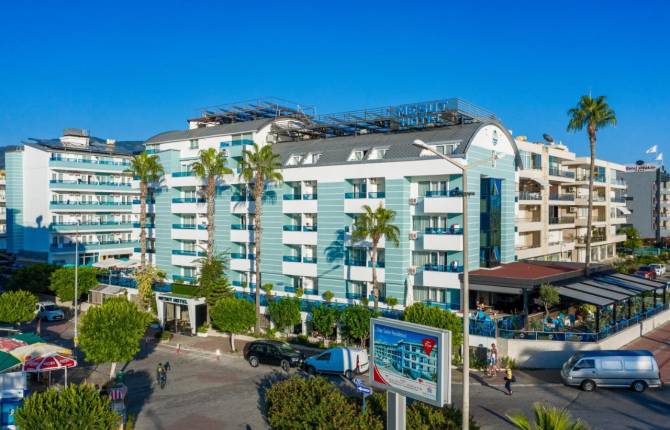 Отель находится в тихом месте и располагает к спокойному отдыху. Возле открытого бассейна есть шезлонги зонтики для принятия солнечных ванн и релаксации. По периметру курортного комплекса есть вечнозеленые кустарники и тропические деревья. Гости отеля могут бесплатно пользоваться парковкой. За услуги врача, прачечной и парикмахерской придется заплатить отдельно. Питание в курортном комплексе осуществляется по системе «все включено» и предоставляет возможность насладиться блюдами турецкой и интернациональной кухни. В барах вам подадут алкогольные и безалкогольные напитки, экзотические коктейли, деликатные закуски и кондитерские изделия местного и зарубежного производства. Номера отеля оснащены телефоном, телевизором, балконом, ванной комнатой со стандартным набором гигиенических средств, кондиционером и феном. С окон открывается потрясающий вид на море и горы. Для детей в комплексе бассейн оборудован мелкой секцией. Есть также мини-клуб. По предварительному запросу, вам в номер поставят детскую кроватку. За отдельную оплату можно воспользоваться услугами няни. По подземному переходу через дорогу вы сможете попасть к ближайшему пляжу. Он оснащен зонтиками, матрасами и шезлонгами. Пользование этим инвентарем не входит в стоимость проживания в отеле. Аниматоры проводят в отеле развлекательные мероприятия. Активные отдыхающие смогут поиграть в пляжный волейбол, настольный теннис, посетить тренажерный зал. За отдельную оплату можно использовать инвентарь для водных видов спорта на пляже. Восстановить силы и энергию можно в сауне, турецкой бане и массажном кабинете. Персонал отеля предоставляет возможность взять велосипед напрокат. На территории комплекса есть магазины, где вы сможете купить недостающие вам предметы обихода, сувениры и продукты.