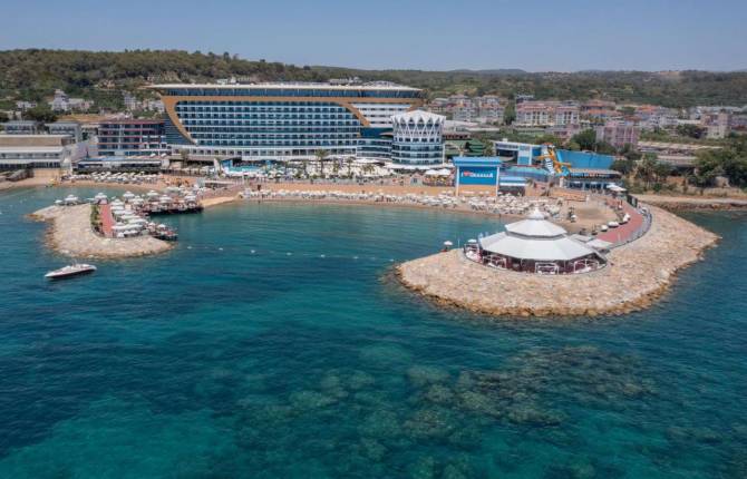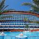 Гостям предлагаются номера разной категории, среди которых есть варианты с видом на море. В интерьере использованы натуральные материалы нейтральных цветов, пол покрыт паркетом. Во всех номерах есть балкон и центральное кондиционирование. В ванной комнате оборудован душ или ванная, имеется фен, также, отдыхающим предоставляются белые халаты, тапочки и набор косметических принадлежностей. В распоряжении туристов мини-бар, в котором ежедневно обновляют напитки, сейф, Wi-Fi и спутниковое телевидение с российскими каналами. Основной ресторан сервирует блюда международной кухни по принципу фуршета, в том числе диетический и детский буфеты. Помимо этого, гости смогут отведать блюда турецкой, ливанской, итальянской, русской и китайской кухни в ресторанах, которые обслуживают по меню. Также, для туристов работают несколько баров, среди которых ирландский паб, витамин и диско бары. Отель располагает несколькими бассейнами с водными горками. Также, можно поплавать в Средиземном море на частном пляже, который покрыт песком и галькой. Для отдыха предоставляются бесплатные шезлонги, зонты и пляжные полотенца. Для юных туристов оборудованы 2 неглубоких бассейна. Для детей разного возраста функционирует мини-клуб, где в течении дня проводят развлекательные мероприятия, а вечером – мини-диско. Кроме того, за дополнительную плату можно арендовать коляску для малыша. Для любителей активного отдыха оборудованы теннисные корты, площадки для спортивных игр и современный фитнес-зал. На пляже предлагаются водные виды спорта. В течении всего дня и вечером туристы приглашаются на развлекательные шоу и игры. В SPA-центре представлен широкий выбор оздоровительных процедур для кожи лица и тела. В распоряжении гостей турецкая и русская баня, сауна, солевая комната и талассо бассейн с морской водой.