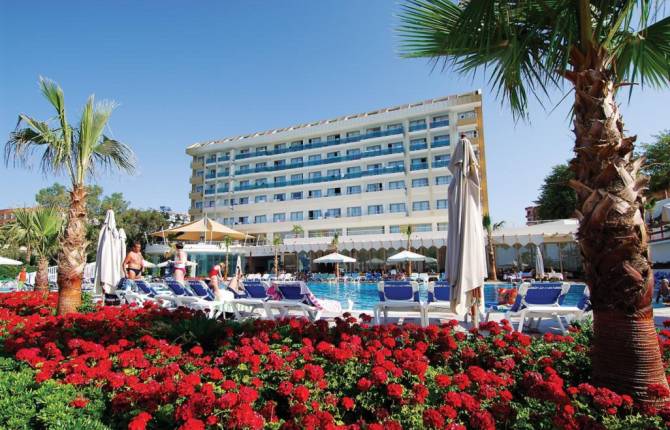 Основной ресторан и бар работают по системе «все включено». Здесь вы сможете насладиться блюдами национальной и международной кухни, выпить разнообразные напитки, экзотические коктейли и попробовать деликатные закуски местного и зарубежного производства. Курортный комплекс имеет 4 типа номеров. Они оснащены балконом, ванной комнатой с гигиеническими принадлежностями и феном. В комнатах есть спутниковое телевидение, мини-бар с холодильником, телефон, сейф, кондиционер. Обслуживание в номерах проводится круглосуточно. К платному сервису относится: прокат автомобилей, пользование автостоянкой, комнатой хранения багажа и сейфом у администрации, посещение парикмахерской и массажного кабинета. Активные гости комплекса смогут поиграть в водное поло, настольный и большой теннис, бильярд и пляжный волейбол, заняться гимнастикой и аэробикой, посетить тренажерный зал, в котором находится базовый набор инвентаря для проведения полноценных тренировок. Для оздоровления организма можно сходить в сауну, турецкую баню и джакузи. Аниматоры проводят развлекательные мероприятия на протяжении дня. В дискоклубе можно оторваться под современные танцевальные хиты. На территории комплекса есть сад с террасой для загара. В амфитеатре актеры проводят свои шоу для гостей отеля. Телевизионная и игровая комната оснащены современной аудио и видео техникой. Собственный песчано-галечный пляж имеет все необходимое для полноценного отдыха: полотенца, зонтики, матрасы и шезлонги (бесплатно). Для малышей на территории отеля есть мини-бассейн, игровая площадка и мини-клуб. За отдельную оплату вы сможете воспользоваться услугами няни. По предварительному запросу вам в номер поставят детскую кроватку.