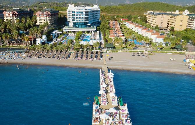 Отель Q Premium Resort относится к категории отелей 5 * и расположен в 45 километрах от Аланьи у Средиземноморского побережья. Аэропорт находится в 85 километрах. У отеля есть выход к собственному песочно-галечному пляжу. Роскошный отель Q Premium Resort был открыт в 2011 году и предлагает гостям 350 изысканных номера, которые очаруют вас своим убранством, комфортом и уютом. В каждом номере для удобства гостей ванная комната, фен, кондиционер, мини-бар, спутниковое телевидение, LCD телевизоры, балкон, джакузи ( не во всех). На территории отеля работает Wifi. Рестораны высокой кухни предлагает обслуживание по системе A la Carte, так же для гостей рестораны предоставляют шведский стол, где представлена местная и международная кухня. Бары и клубы отеля работают до утра. В отеле большой комплекс развлечений. Здесь и плавательные бассейны детские и общие, аквапарк, спортивные площадки, Спа-комплекс, тренажерный зал, сауна, парковка, детский-мини клуб, бильярд, бочча, дартс. На протяжении всего отдыха вас будут развлекать аниматоры и приглашенные артисты. Персонал отеля говорит на русском языке.