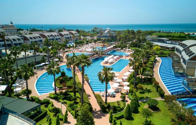 Этот отель расположен на 1-й пляжной линии и занимает большую территорию, где есть магазины, кинотеатр, бутики, конференц-залы, ночной клуб. Сам отель состоит из большого современного 6-этажного здания, а также нескольких бунгало. В отеле есть достаточное количество номеров, которые полностью укомплектованы современной мебелью и техникой. В каждом номере есть ванна, фен, мини-бар, кондиционер, кабельное ТВ, телефон, балкон (некоторые номера без балконов). С домашними животными в отеле размещение запрещено. На территории работает главный ресторан, в котором блюда подаются в виде шведского стола. В ресторане для детей есть отдельное меню, есть собственная кондитерская, ресторан закусок, а также A la carte рестораны, где можно попробовать очень вкусные блюда национально кухни и не только. К услугам гостей в отеле работает 7 баров, которые расположены в разных местах. Для гостей на территории отеля работает 4 больших теннисных корта с жестким покрытием и освещением. Есть площадки для игры в мини-футбол, баскетбол, пляжный волейбол. Можно пострелять из лука, поиграть в шахматы, расслабиться в сауне или в кальянной. За отдельную плату можно сходить на массаж, привести кожу в тонус в СПА-салоне. Вечером можно сходить на дискотеку, в тренажерный зал, заняться аэробикой или просто наладиться анимацией. Для детей работает отдельный бассейн, площадка, игровой клуб. Для детей в возрасте от 4 до 12 лет работает мини-клуб. Есть площадка для мини-футбола, а также многофункциональный уголок. В ресторане есть стульчики для кормления. В номер можно заказать детскую кроватку, если есть в этом необходимость. Оплата услуг осуществляется платёжными картами европейского стандарта Visa, MasterCard.