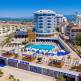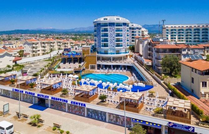 Этот отель был построен несколько лет тому назад. Общая площадь составляет 9500 квадратных метров. Сам отель представляет собой одно большое современное 9-этажное здание, в котором расположены номера со всеми удобствами. На выбор можно забронировать 2-3 местный стандартный номер, которых в отеле больше всего. Есть также семейные номера, которые рассчитаны на 4-х человек. В таких номерах есть две смежные спальни. В гостинице есть специальные номера для людей с ограниченными физическими возможностями. В каждом номере есть балкон с видом на море, кондиционер, душ, туалет, телевизор, спутниковое телевидение, телефон с прямым набором номера, а также платный сейф, мини-бар. Имеются в бесплатном доступе все необходимые туалетные принадлежности, а также фен. Вход в номера осуществляется по электронно-карточной системе. На территории отеля есть супермаркеты, магазины, интернет-кафе, лифт, полностью оборудованный конференц-зал для проведения презентаций и деловых встреч. За дополнительную плату можно воспользоваться услугой парикмахерской, прачечной, заказать услугу трансфера в аэропорт, получить доступ к скоростному интернету. Гости отеля могут пользоваться бесплатно открытым и крытым бассейном с водными горками, играть в пляжный волейбол, баскетбол, настольный теннис, пользоваться тренажерами в фитнес-центре, ходить в баню, сауну. Для детей работает отдельный бассейн, игровая площадка, детский клуб с собственным рестораном. Есть возможность взять напрокат детскую коляску. На территории работает основной ресторан с террасой и несколько ресторанов A La Carte с предварительным резервированием. Можно попробовать блюда турецкой и интернациональной кухни. Оплата услуг производится международными картами Visa и MasterCard.