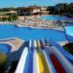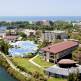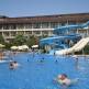 Гостиница была построена еще в прошлом столетии. За это время пережила очень многое. Сам комплекс состоит из нескольких корпусов разной этажности и нескольких вилл, где можно на выбор себе забронировать один из номеров. Номера в наличии разного типа, начиная от обычного стандартного, заканчивая номерами повышенной комфортности. Есть также апартаменты для инвалидов, которые оборудованы должным образом. В каждом номере есть балкон с видом на море или на сад. Можно пользоваться кондиционером, телевизором со спутниковым телевидением. Имеется сейф, прямой телефон, мини-бар, беспроводной интернет. Также прямо в номере есть электрочайник и наборы для приготовления кофе или чая. Постельное бельё в номерах меняют раз в два дня. Смена полотенец каждые два дня, но по желанию могут менять каждый день. Всё это бесплатно. На территории отеля работает несколько бассейнов для взрослых, есть отдельный бассейн для детей. Можно покататься на горках, на матрацах. В отеле работает несколько ресторанов, где есть большой ассортимент блюд европейской кухни и не только на выбор. Работает также турецкий ресторан, который обслуживает гостей по меню. Одно посещение бесплатно, а дальше – за деньги. В ресторане есть стульчики для кормления. В номерах можно поставить детскую кроватку. В основном ресторане блюда подаются в виде шведского стола. Есть отдельное меню для вегетарианцев. На территории отеля работает 4 бара в том числе и на пляже, где можно выпить вкусный коктейль и расслабиться. В определённое время для всех гостей предусмотрен сервис мороженого. Дети могут развлечься в комнате для игр, поиграть в мини-клубе, где набор идёт от 4 до 12 лет, весело провести время в детском бассейне.