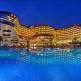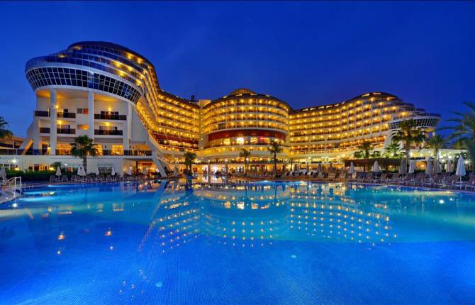 Гостиница начала принимать гостей несколько лет тому назад. Занимает большую площадь порядка 60 тыс.кв.метров. На территории есть большой сад, места для отдыха, занятия спортом, игр. Сам отель состоит из большого 10-этажного здания, где можно забронировать один из номеров. На выбор для гостей есть стандартные номера с видом на море или частичным видом на море. Площадь номера составляет 30 кв.метров. Есть много семейных номеров, которые по площади в два раза больше, а также номера для людей с ограниченными физическими возможностями. В каждом номере есть современная мебель, кондиционер, телефон, пожарная сигнализация, большой телевизор, платный сейф, мини-бар, ванная комната с вторым телефоном и банные принадлежности. Тип питания в отеле подаётся по системе "всё включено". Есть отдельное меню для детей и диабетиков. В главном ресторане можно насладиться блюдами местной и международной кухни. Есть отдельные залы для курящих и некурящих. В отеле работает несколько баров с большим ассортиментом алкогольных и безалкогольных напитков. Гости отеля могут прекрасно провести время у бассейнов. На территории работает крытый бассейн с подогревом воды в зимний период. Можно развлечься на горках в аквапарке, сходить в тренажёрный зал, который обустроен новыми тренажерами. Имеется игровая комната, дорожки для игры в боулинг, бильярд, интернет-кафе, настольный теннис, СПА-центр, несколько массажных кабинетов, а также комнаты по уходу за кожей и телом. Для детей на территории есть детская площадка, отдельный детский бассейн, аквапарк, мини-клуб, детский буфет. За дополнительную плату можно организовать трансфер из аэропорта в любом направлении. К оплате принимаются платёжные карты международного образца MasterCard и Visa. Размещение гостей с домашними животными строго запрещено.
