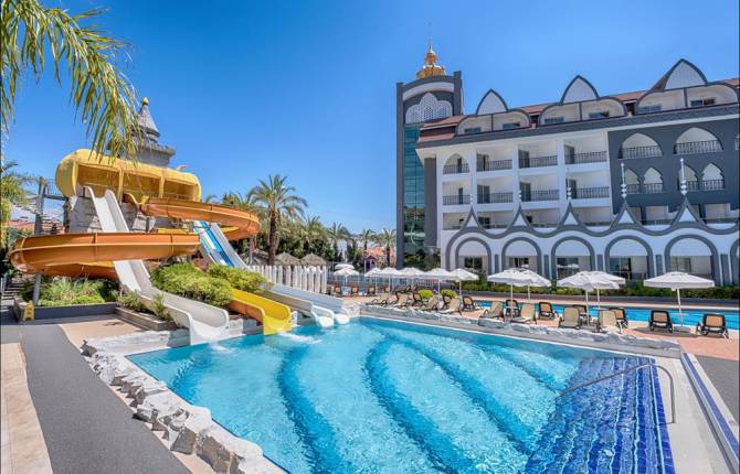 Эта гостиница была построена несколько лет тому назад и состоит из двух современных зданий, которые были построены в 2013 и 2015 годах. Общая территория отеля составляет 17 тысяч квадратных метров. На выбор гостям отеля доступны стандартные номера, апартаменты эконом-класса, семейные номера, а также номера повышенного комфорта. Есть отдельные номера для людей с ограниченными физическими возможностями. Все номера разные по площади и отличаются по уровню комфорта. В номерах можно бесплатно пользоваться сейфом, феном, кондиционером, душем, телевизором, телефоном, мини-баром, кабельным телевидением, балконом. На территории отеля работает открытый плавательный бассейн и джакузи, несколько бассейнов для отдыха, турецкая баня, фитнес-зал, ежедневная программа анимации, банкетный зал на 250 человек. За дополнительную плату можно пользоваться услугами парикмахерской, игровой комнатой, играть в водные виды спорта, брать в аренду автомобиль, пользоваться услугами врача, няни для детей, а также скоростным доступом в Интернет. В отеле тип питания предоставляется по системе "Всё включено". Сюда входит завтрак, поздний завтрак, обед и ужин. Блюда национальной и европейской кухни подаются в определённые часы по типу шведского стола. В отеле работает собственная кондитерская и рестораны A la carte, которые принимают гостей по предварительной записи. В лобби отеля, у бассейна, на пляже работает бар, где можно порадовать себя безалкогольными и алкогольными напитками. Алкоголь во время завтрака не предусмотрен. Для детей на территории отеля работает бассейн, детская площадка, клуб. В ресторанах есть отдельное детское меню и стульчики для кормления. Детская кроватка в номер предоставляется по запросу. Размещение с домашними животными не допускается. К оплате принимаются карты Виза, Мастер, Евро.