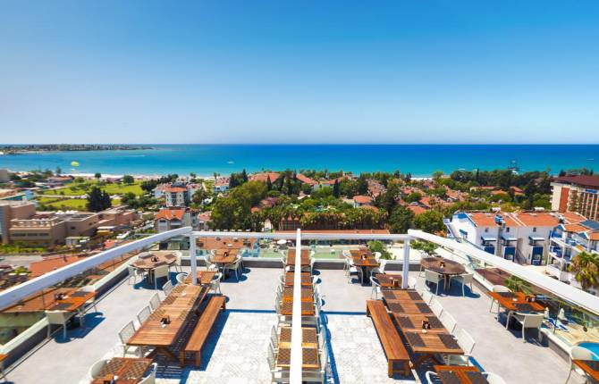 Гостиница была построена недалеко от берега Средиземного моря. На территории отеля есть очень много красивых мест, где гости могут расслабиться, отдохнуть, насладиться прекрасной природой, отключиться от трудовых будней. Рядом с отелем есть много исторических мест и достопримечательностей, которые стоит увидеть каждому гостю. На выбор можно забронировать стандартный номер или семейный. Все стандартные номера идут двухместные. В номерах есть современная мебель и техника. На полу лежит паркет. В семейных номерах находится две смежных комнаты. В этих номерах есть отдельная гостиная и спальня. Все номера обслуживаются круглосуточно. В каждом номере есть балкон с красивым видом, телевизор, кондиционер, мини-бар с холодильником, телефон с прямым набором, сейф, чайник, душевая с туалетными принадлежностями. На территории отеля есть большая терраса для загара и красивый сад. Тип питания подаётся по системе "всё включено". Сюда входит завтрак, обед и ужин (шведский стол). В ресторане на выбор можно заказать вкусные блюда турецкой кухни и не только. Есть ресторан, который обслуживает гостей по меню. На территории работает несколько баров, которые оформлены в тёплых тонах. Проводить время в таких заведениях одно удовольствие. Гости отеля могут пользоваться бассейнами, сауной, турецкой баней, услугами СПА-центра, фитнес-центром. За дополнительную плату можно сходить на массаж, побывать на экскурсии.