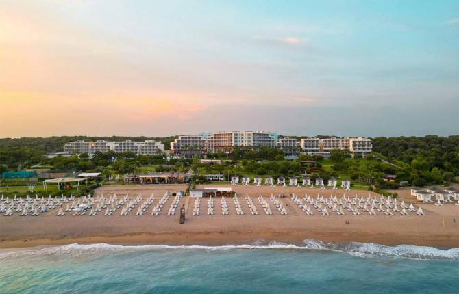 Гостиница состоит из нескольких 4-5-этажных корпусов, где можно зарезервировать один из номеров. В отеле есть стандартные номера и семейные. Стандартные апартаменты есть 1-2-3-х местные. Все номера достаточно просторные и комфортные. Есть вся необходимая мебель и техника. В каждом номере есть балкон с видом на море или на город, плоский телевизор со спутниковыми каналами, мини-бар с холодильником, кондиционер, сейф, телефон с прямым набором, а также ванная комната, где есть душевая кабина, фен и все необходимые банные принадлежности. На территории комплекса работает игровая комната, диско-клуб, конференц-зал, который рассчитан на 250 человек. Здесь за дополнительную плату можно воспользоваться услугами прачечной, фотографа, скоростного Интернета, частого врача. Можно отправить факс, сделать ксерокопию, сделать распечатку. В пределах комплекса работают магазины. Есть возможность организации банкетов. Для отдыхающих в этом отеле работает сауна, турецкая баня, фитнес-центр, 3 открытых бассейна, один крытый с подогревом воды, аквапарк, баскетбольная площадка. Можно играть в футбол, волейбол, бильярд, большой и настольный теннис. За дополнительную плату можно заняться серфингом, виндсерфингом, расслабиться в джакузи, сходить на массаж. Тип питания в отеле предоставляется по системе "Всё включено". На территории работает 6 ресторанов, 5 баров. Часть ресторанов работает по системе A la carte. Здесь большое разнообразие блюд национальной и европейской кухни. Основной ресторан рассчитан на 400 персон. В течение дня можно пробовать лёгкие турецкие закуски, выпивать прохладительные напитки у баров, которые расположены по всей территории. Размещение с домашними животными в отеле запрещено.