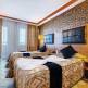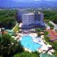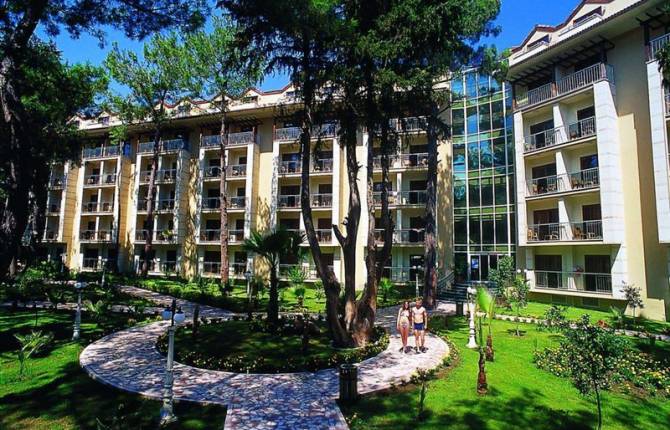 Отель расположен недалеко от Кемера и международного аэропорта в Анталии. Компактная территория данного комплекса находится возле хвойного леса и возле самого отеля достаточно много зеленой растительности. В здании находится 393 номера со средней площадью 25 м2. В комнатах есть фен, центральное кондиционирование, сейф, Wi-Fi, мини-бар, спутниковое телевидение. В ванных комнатах размещены душевые кабинки. На территории отеля находится 4 бара, 3 ресторана, 2 бассейна (один из которых крытый), 3 водные горки, салон красоты и SPA-центр, интернет кафе и большой теннисный корт с хард покрытием. Рестораны и бары работают по системе «все включено». Пятиразовое питание на день дополняется еще и турецкими лепешками, мороженым и выпечкой в определенное время. Всем отдыхающим можно воспользоваться сауной, турецкой баней, фитнес центром, за отдельную плату свои услуги предоставляет салон красоты, SPA-центр и массажный кабинет. Развлекательные программы и спорт включают в себя настольный и большой теннис, дартс, утренняя гимнастика и аэробика, пляжный волейбол и водное поло. За освещение корта в темное время суток и водные виды спорта придется доплатить. Для детей отель предоставляет большое количество развлекательных мероприятий. Ваши малыши смогут пойти в мини-диско, на открытую уличную площадку или в мини-клуб, который разделен по возрастам и имеет свои отдельные программы, более творческие и развивающие для детей 4-12 и более спортивные для 12-16 лет. Здесь часто проводят шоу карикатуры, танцевальные уроки и соревнования, театральные игры и разнообразные конкурсы. В ресторане есть детский буфет и стульчик для кормления. Отель имеет свой галечно-песчаный пляж, оборудованный зонтиками, шезлонгами и матрасами. Всем этим вы сможете воспользоваться бесплатно (включая персональные полотенца). В закрытых помещениях комплекса курить запрещено.