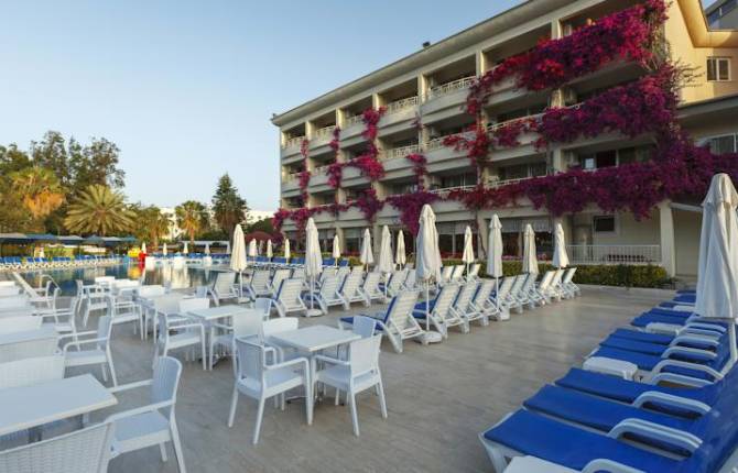 Комплекс был построен почти 10 лет тому назад на побережье Средиземного моря и занимает общую площадь 17200 кв. метров. В этом отеле можно забронировать стандартный номер, семейный, несколько номеров для людей с ограниченными физическими возможностями, а также номера анекс. В каждом номере есть своя душевая, кондиционер, радио, телефон, телевизор, мини-бар, сейф. В некоторых номерах отсутствует балкон. Уборка номеров производится ежедневно, смена белья – 3 раза в неделю. На территории отеля работает 2 ресторана, 5 баров, торговый центр, несколько бассейнов. Крытый бассейн с подогревом воды. Имеется в наличии TV-салон, кабинет врача. Гости могут играть в большой теннис, пляжный волейбол, настольный теннис, посещать баню, массаж, заниматься водными водными видами спорта. Теннисными кортами можно пользоваться только в дневное время. Имеют современное покрытие. Питание предоставляется по системе шведского стола. В течение дня можно бесплатно попробовать пирожные местной кондитерской, прохладительные напитки, вкусные блюда национальной и европейской кухни. Для детей работает отдельный детский бассейн, площадка, а также мини-клуб для детей возрастом от 3 до 12 лет.