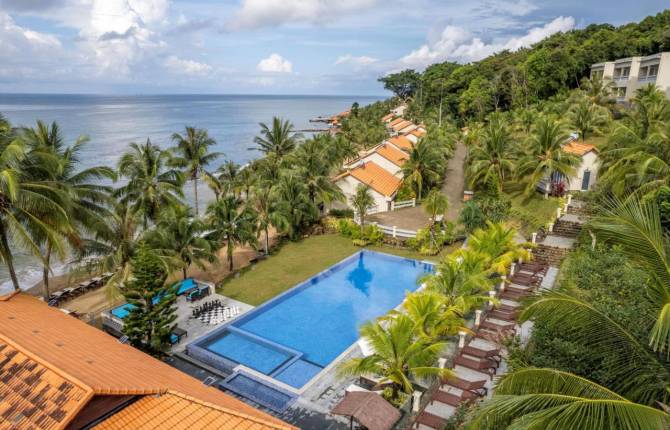 Гостиница находится в известном туристическом городе Фу Кок. До города Дуонг-Донг расстояние от отеля 7,5 километров. Отдыхающие могут забронировать виллу с видом на море, виллу класса люкс с видом на море, двухместный номер Делюкс, виллу с двумя спальнями и собственным бассейном, виллу напротив пляжа, виллу с одной спальней и бассейном, виллу с ванной, где есть две односпальные кровати и один диван-кровать. Во всех номерах есть удобная мебель, современная техника, кондиционер, телевизор с большим плоским экраном, электрический чайник, мини-бар, ванная комната, фен, банные принадлежности. В отеле есть парковка для автомобилей, терраса для загара, бизнес-центр, сад, сувенирный магазин. Отдыхающие могут за дополнительную плату пользоваться услугами стойки регистрации, камерой хранения багажа, прокатом велосипедов, экскурсионным бюро, прачечной. Можно на платной основе организовать трансфер в аэропорт, отправить факс, сделать ксерокопию, купить билеты. В этом отеле могут проживать дети до 5 лет бесплатно. В номер по запросу предоставляется детская кроватка. На территории работает детская площадка. Гости отеля могут пользоваться СПА-центром, массажными кабинетами, играть в бильярд, заниматься дайвингом, велоспортом, пользоваться бассейном. Блюда в основном ресторане подаются по типу шведского стола. К отелю относится частная пляжная зона, где есть раздевалки, зонтики, шезлонги, санузел. Регистрация заезда осуществляется с двух часов дня. Регистрация отъезда проводится до 12 часов дня. В отеле есть номера для некурящих, семейные номера. Размещение с домашними животными не допускается.