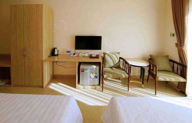 Курортный небольшой отель в провинции. Комфортабельные чистые номера, приветливый, вежливый персонал. Размещает отель в номерах стандарт и делюкс, так же в отеле есть бунгало. В каждом номере есть современный плоский телевизор, личный сан.узел с банными и туалетно-косметическими принадлежностями, сейфом, сплит системой. Отель предоставляет кофе, чай и одну бутылку питьевой воды. В отеле работает два ресторана: NuiNhan по утрам формирует «шведский стол», HaiAu имеет в своем меню фирменные деликатесы, блюда из морепродуктов, блюда национальной кухни. Есть услуга «заказ еды в номер». Отдохнуть гости могут на рыбалке, посетить спорт.зал, спеть в караоке. На территории отеля есть парковка, магазин, экскурсионное бюро. Гости могут на ресепшене поменять валюту, воспользоваться прачечной, бизнес-центром, заказать трансфер. У отеля есть собственный песчаный пляж, совсем рядом с отелем.