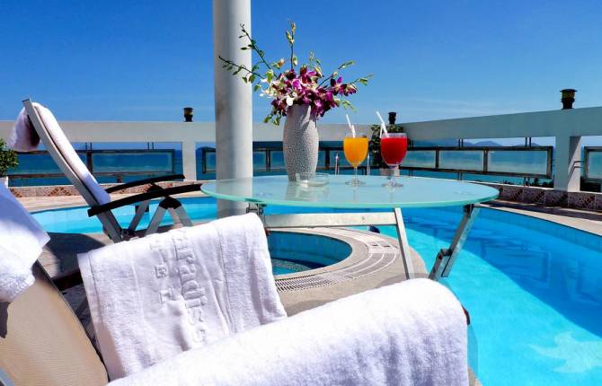 Скромный городской отель, с небольшим набором услуг, уютными, комфортабельными номерами. Гостей отеля обслуживает приветливый, профессиональный персонал. Есть все для скромного пляжного отдыха. Администрация предлагает своим гостям номера различной комфортности. Номера оборудованным гостиным уголком, письменным столом, чайником, cан.узлом с ванной, феном, есть телевизор, кондиционер. Есть номера с балконами, вид открывается на море. В bedroomapartment предусмотрены гостиная с кухней, 2 ванные, 2 спальни, столовая зона. Администрация может предоставить кроватку детскую. На территории отеля предусмотрен 1 ресторан и 1 бар, работает отель по системе BB, HB, FB. Для отдыха в отеле есть спортзал, СПА-центр кабинет массажа. Бассейн у отеля находится на крыше здания, открытый. При необходимости можно воспользоваться сейфом на ресепшене (бесплатно). За отдельную плату гости могут воспользоваться интернет-кафе, услугами врача, прачечной или посетить салон красоты, джакузи, массажный кабинет, сауну, пригласить к ребенку няню. Есть возможность заняться дайвингом. Пляж городской, находится совсем рядом с отелем. Администрация принимает кредитные карты.