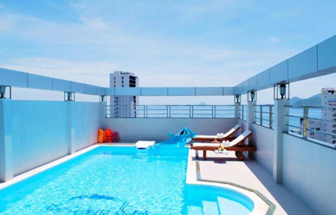 Расположен отель в городе Нячанг, от моря на третьей линии. Отдыхающих ждут просторные современные благоустроенные номера, услужливый персонал, профессиональный сервис, уютная обстановка. Номера укомплектованы современной комфортабельной мебелью, так же есть кондиционер, ТВ, личная душевая комната и фен. Так же есть мини-бар, сей и телефон. Гости могут полюбоваться морем и природой с индивидуального балкона. На территории отеля можно бесплатно пользоваться спорт.залом, спа-центром, бассейном, джакузи/ сауной/ парной. Инфраструктура отеля: экскурсионное бюро, парковка, прачечная, пункт обмена валюты, прокат авто/велосипедов, трансфер, сувенирная лавка. Находится отель на третьей линии. Отель работает по системе BB, HB. Гости всегда могут посетить главный ресторан с европейским и вьетнамским меню. Есть бассейн, конференц-зал. При поселении администрация взымает залог.
