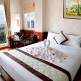 В этом отеле есть на выбор такие номера: двухместный Делюкс с двумя односпальными кроватями и балконом, улучшенный двухместный номер с одной большой двухместной кроватью, двухместный номер Делюкс, двухместный номер Гранд Делюкс, двухместный номер Гранд Делюкс с отдельными кроватями и балконом. В отеле есть трёхместный номер Гранд Делюкс с балконом. В таком номере есть односпальная и двуспальная кровать. В номере есть кондиционер, телефон, сейф, мини-бар с бесплатной питьевой водой, душевая, балкон. На территории отеля работает ресторан, прачечная, лифт, сейф (платно), бизнес-центр, аренда велосипедов, камера хранения багажа, экскурсионное бюро, пункт обмена валют, круглосуточная стойка регистрации. В отеле можно за дополнительную плату заказать услугу глажки одежды, организовать трансфер в аэропорт, взять напрокат автомобиль. Обслуживающий персонал в этом отеле разговаривает на вьетнамском и английском языках.